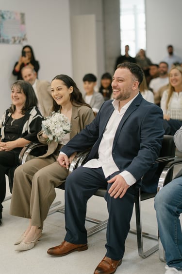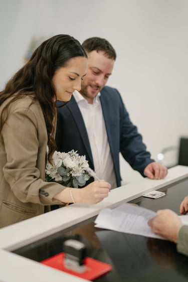 Desde la firma y el intercambio de anillos hasta los retratos en pareja y las fotos con familiares y amigos, creamos un registro visual cálido, elegante y lleno de significado. Cada imagen está pensada para conservar la historia de su boda civil de forma genuina y memorable.